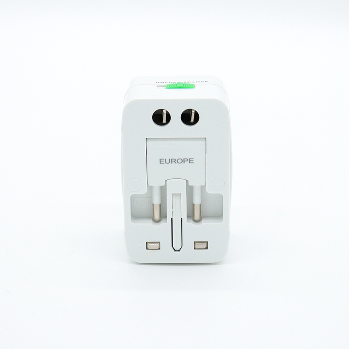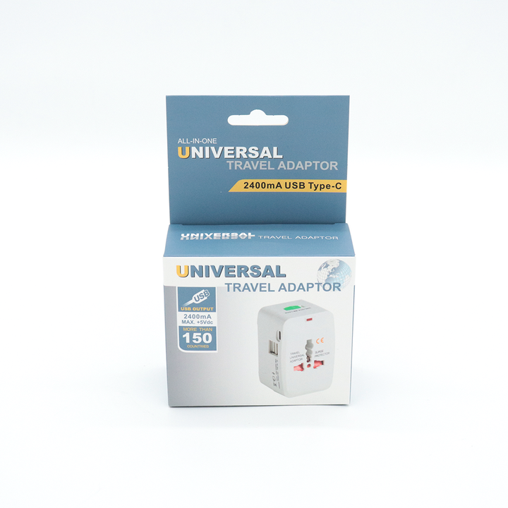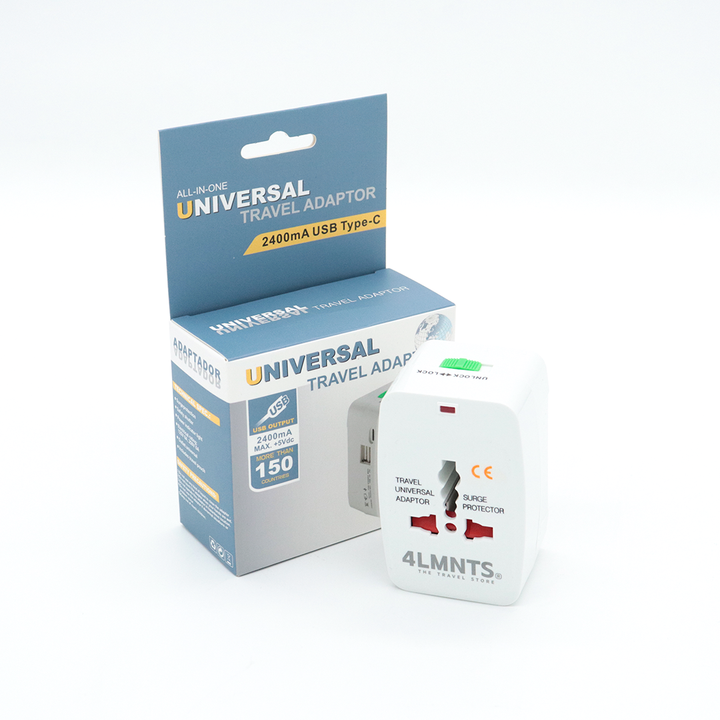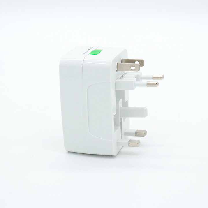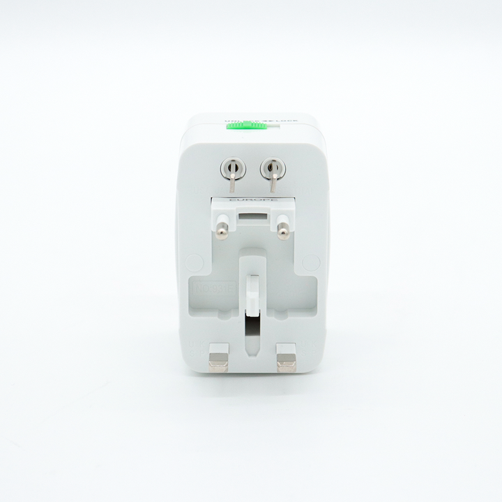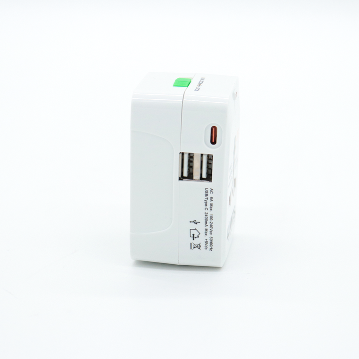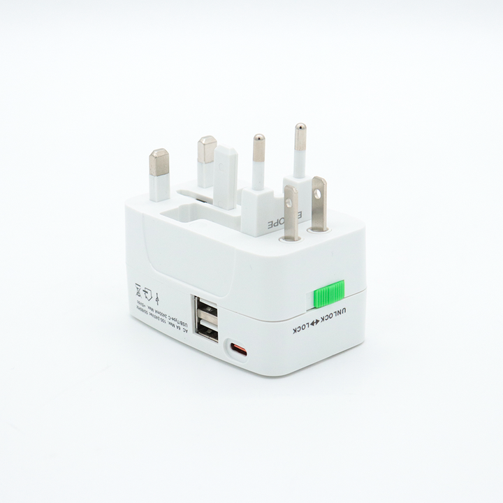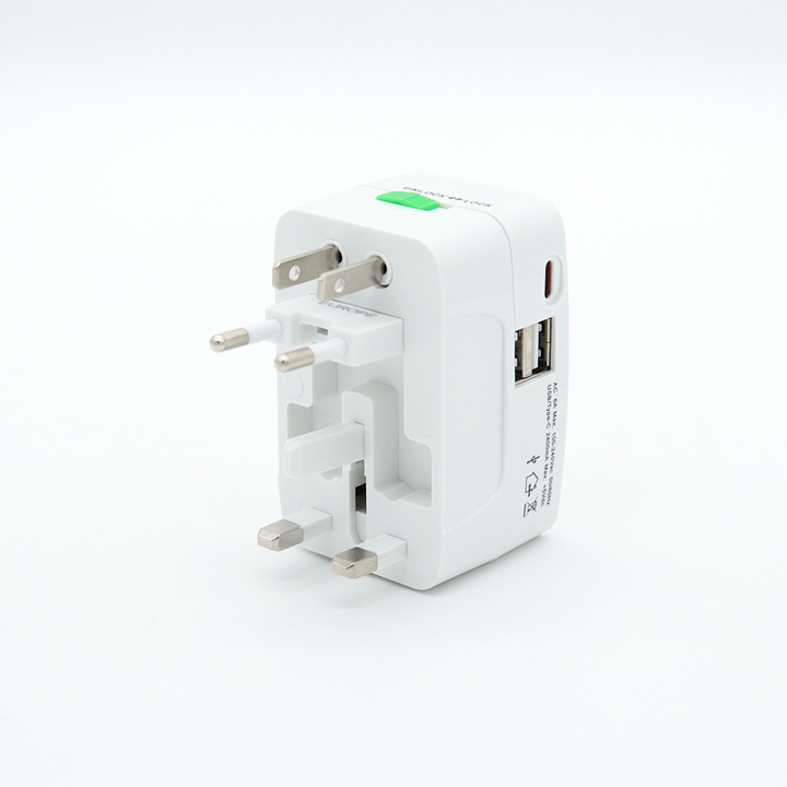 Adaptador Universal de Viaje con 2 Puertos USB + Tipo C
