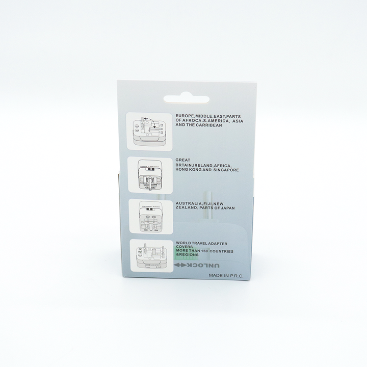 Este adaptador de enchufe universal es el compañero perfecto para tus aventuras. Compatible con más de 150 países (incluidos EE. UU., Reino Unido, Europa y Australia), te permite conectar fácilmente tus dispositivos sin importar dónde estés.