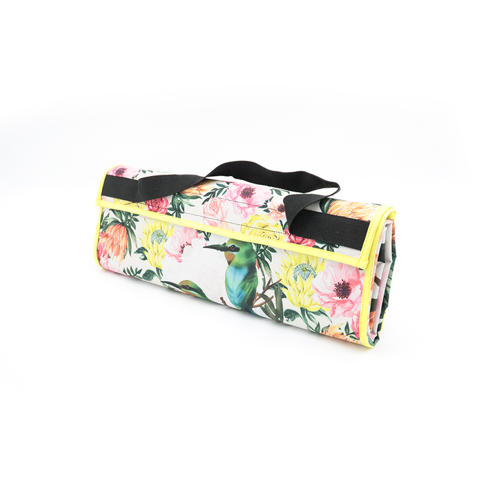 Cuenta con sesgo reforzado en todo el contorno para mayor resistencia y durabilidad. Su diseño práctico permite plegarla fácilmente y convertirla en un bolso compacto, con cierre en velcro y manija integrada que hacen más fácil llevarla a todas partes.